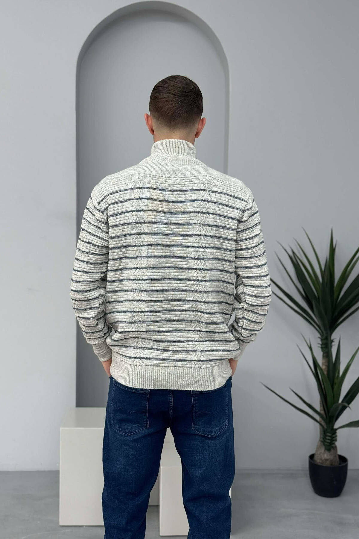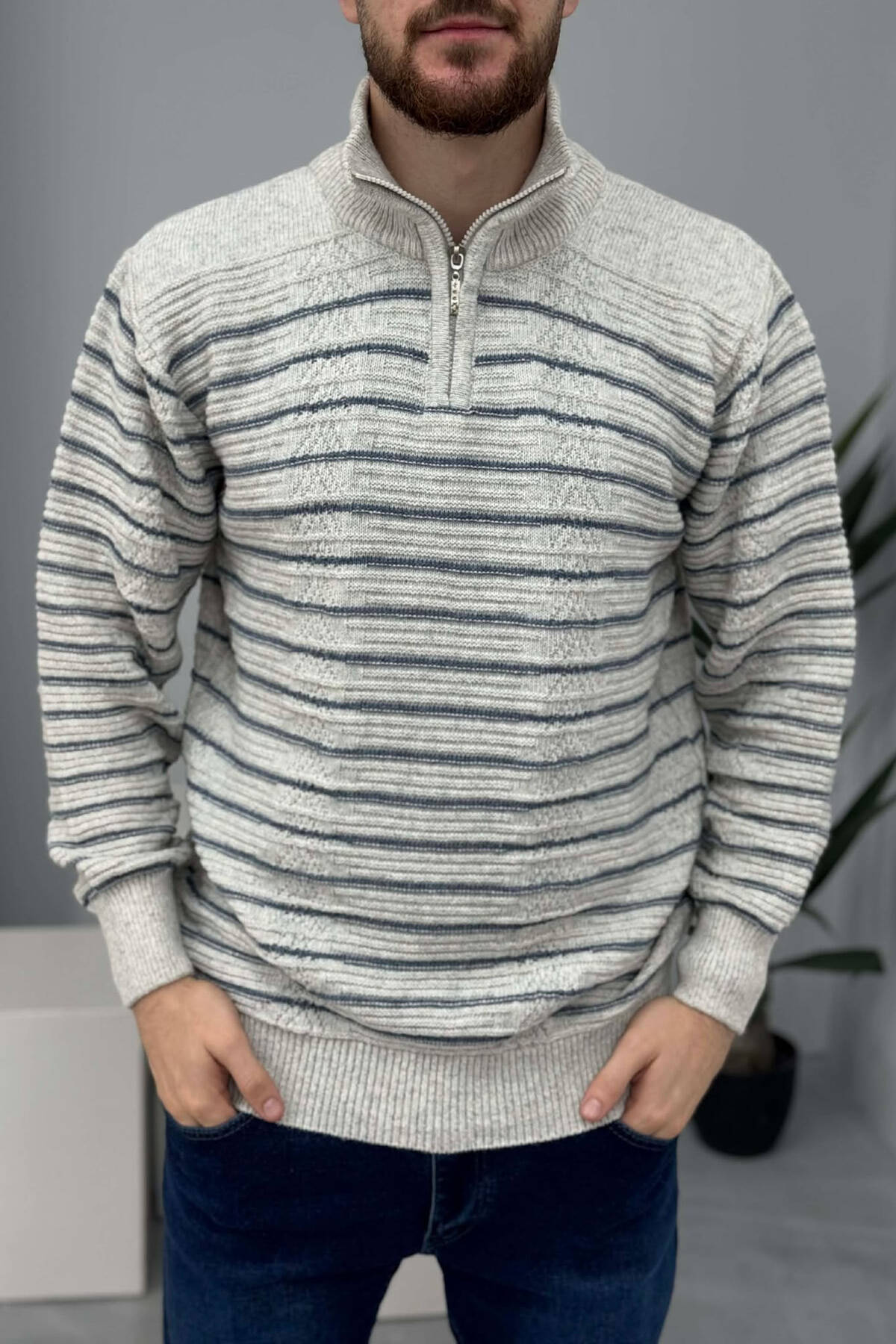 ZIPPER NECK SIMPLE MEN SWEATER LIGHT GREY/GZ