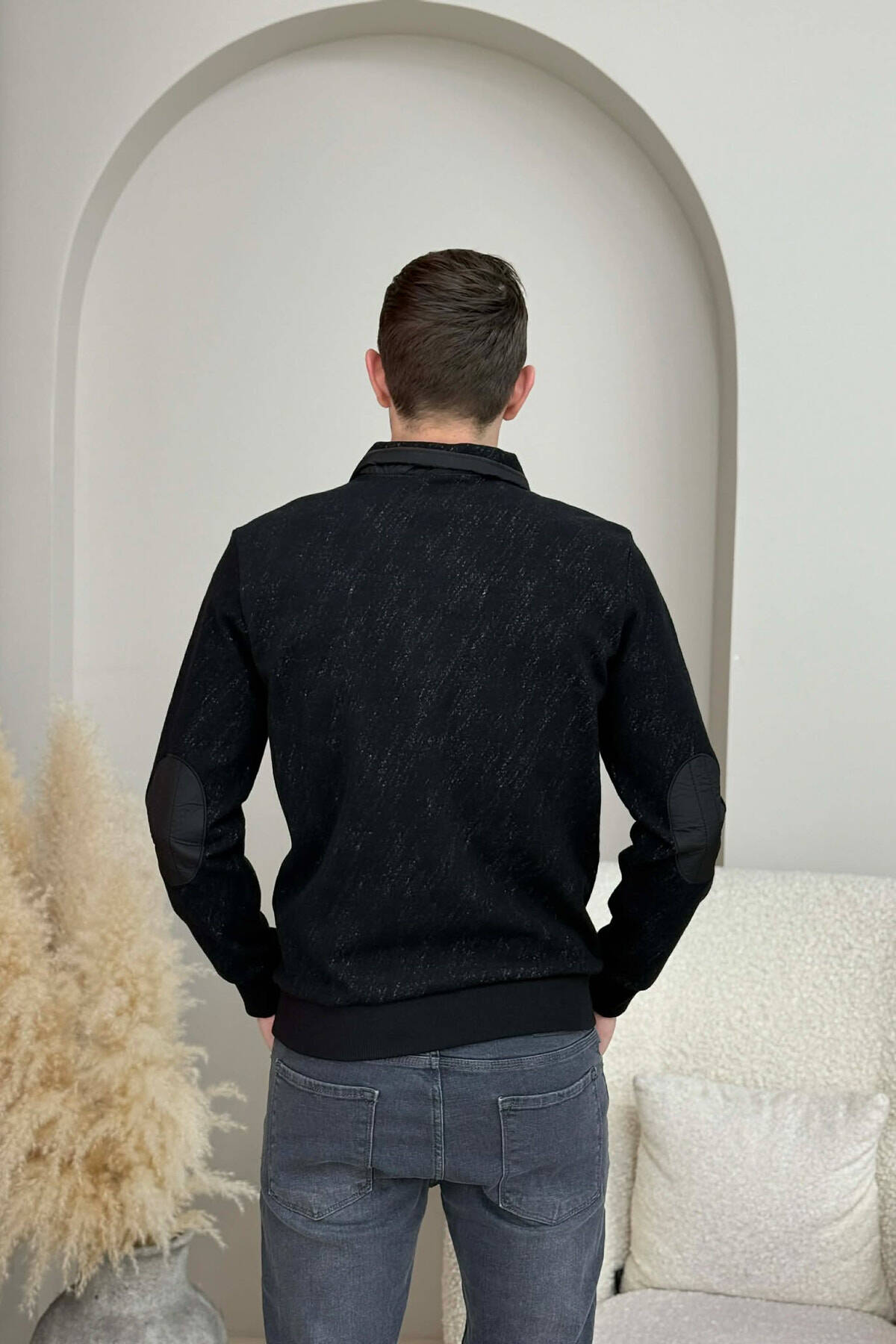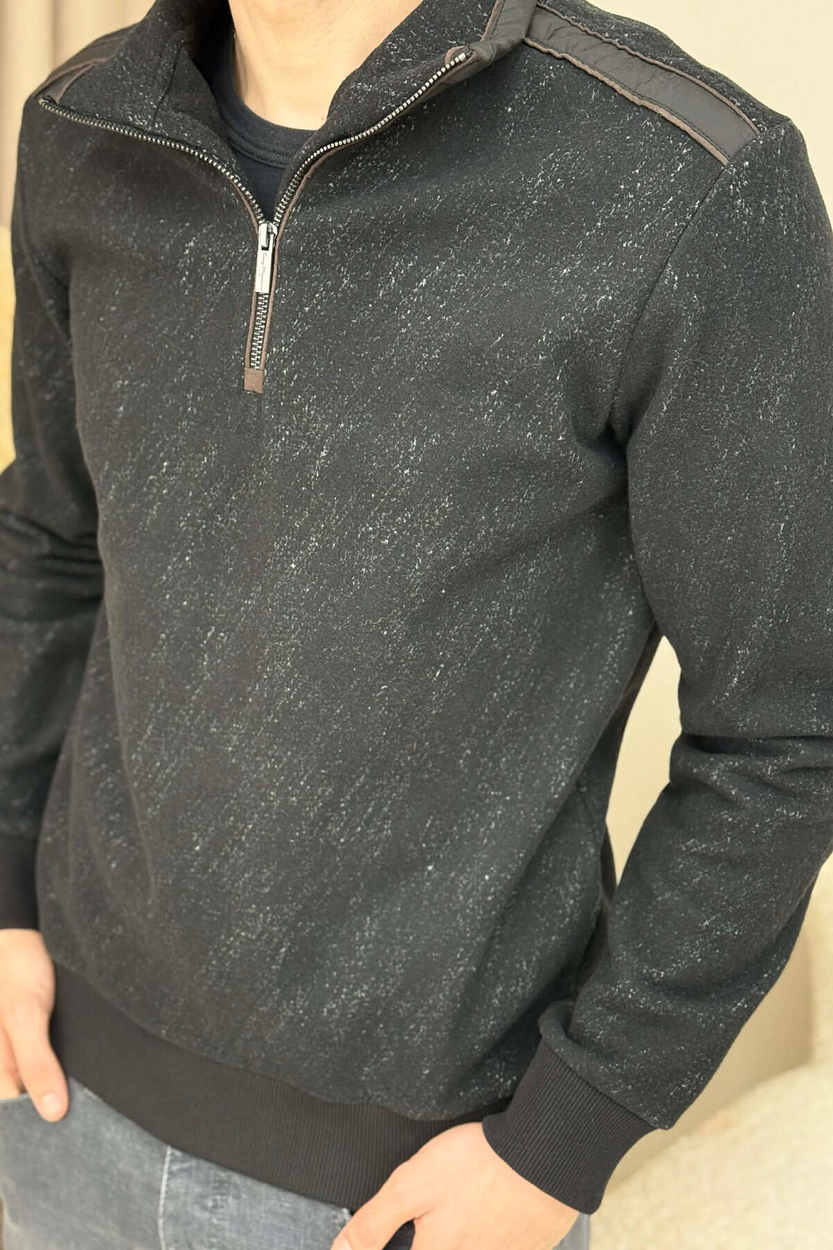 ZIPPER NECK SIMPLE MEN SWEATSHIRT BLACK/ E ZEZE