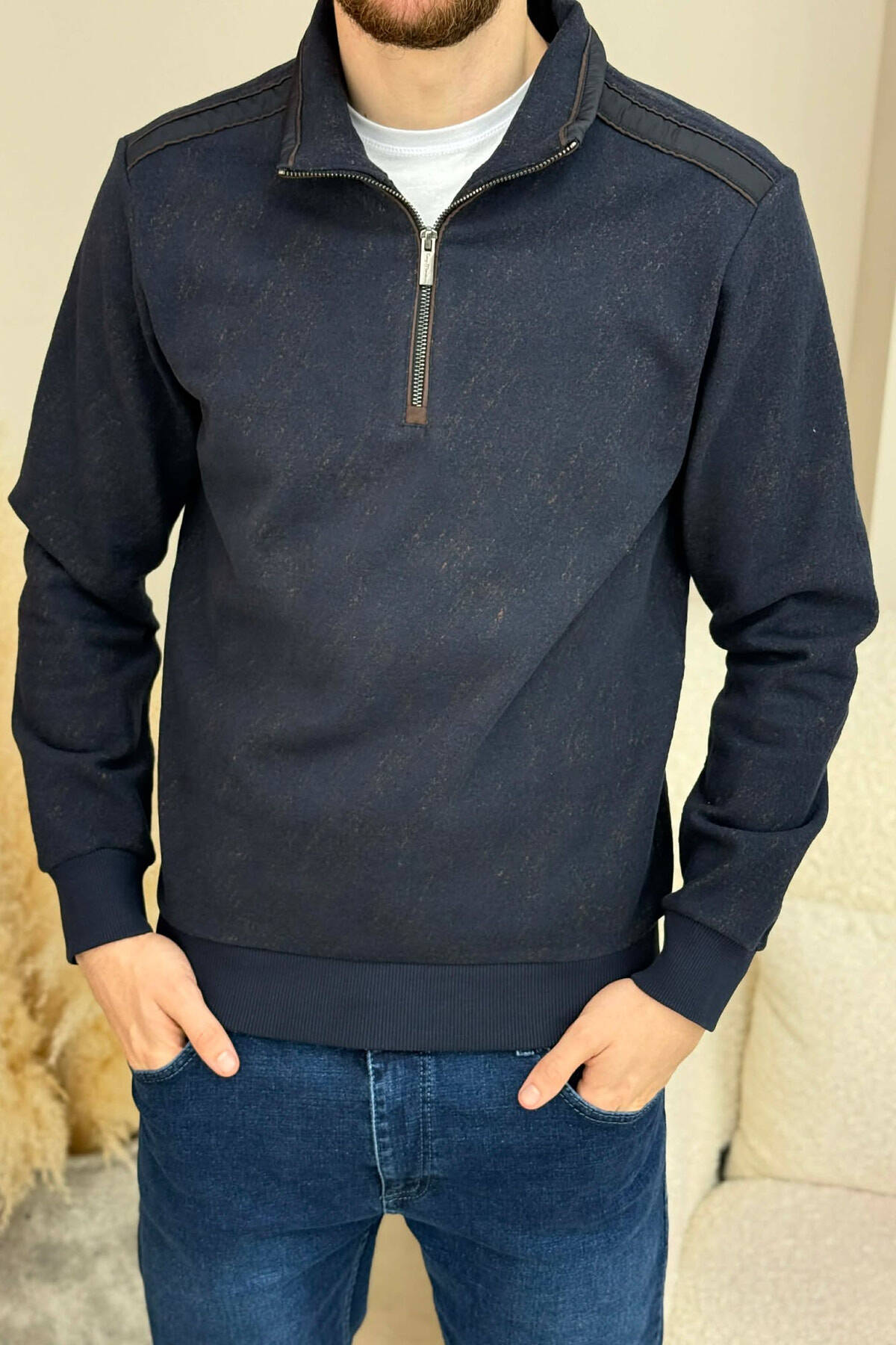 ZIPPER NECK SIMPLE MEN SWEATSHIRT DARK BLUE/BEE