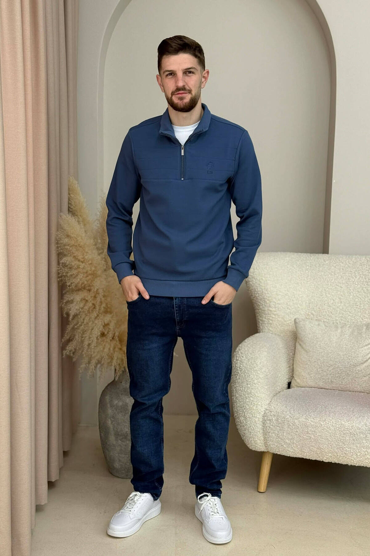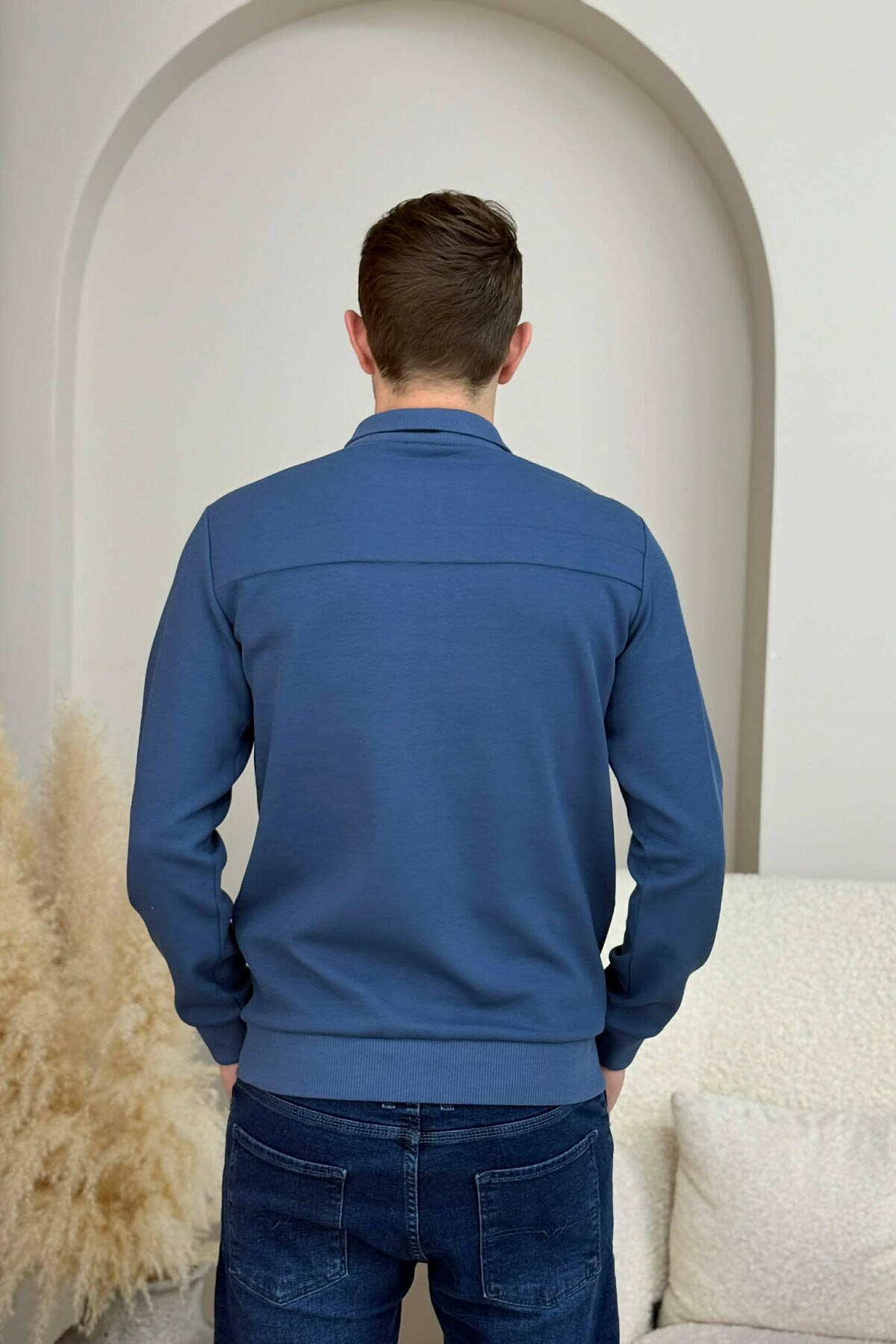 ONE COLOR ZIPPER NECK MEN SWEATSHIRT BLUE/BLU