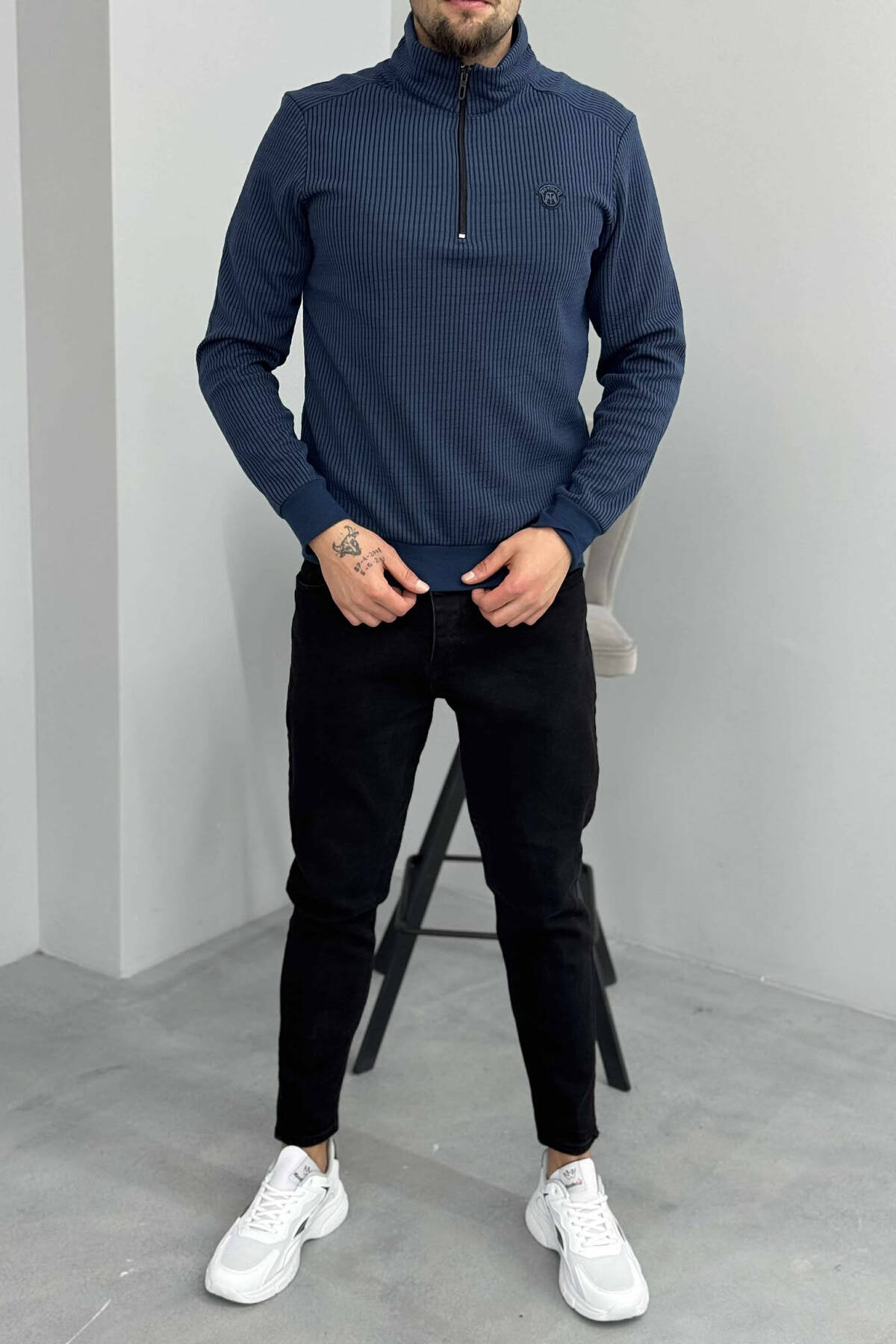 BLUZË ME JAKË ME ZINXHIR DHE LOGO TË VOGËL PËR MESHKUJ NË NGJYRËN BLU