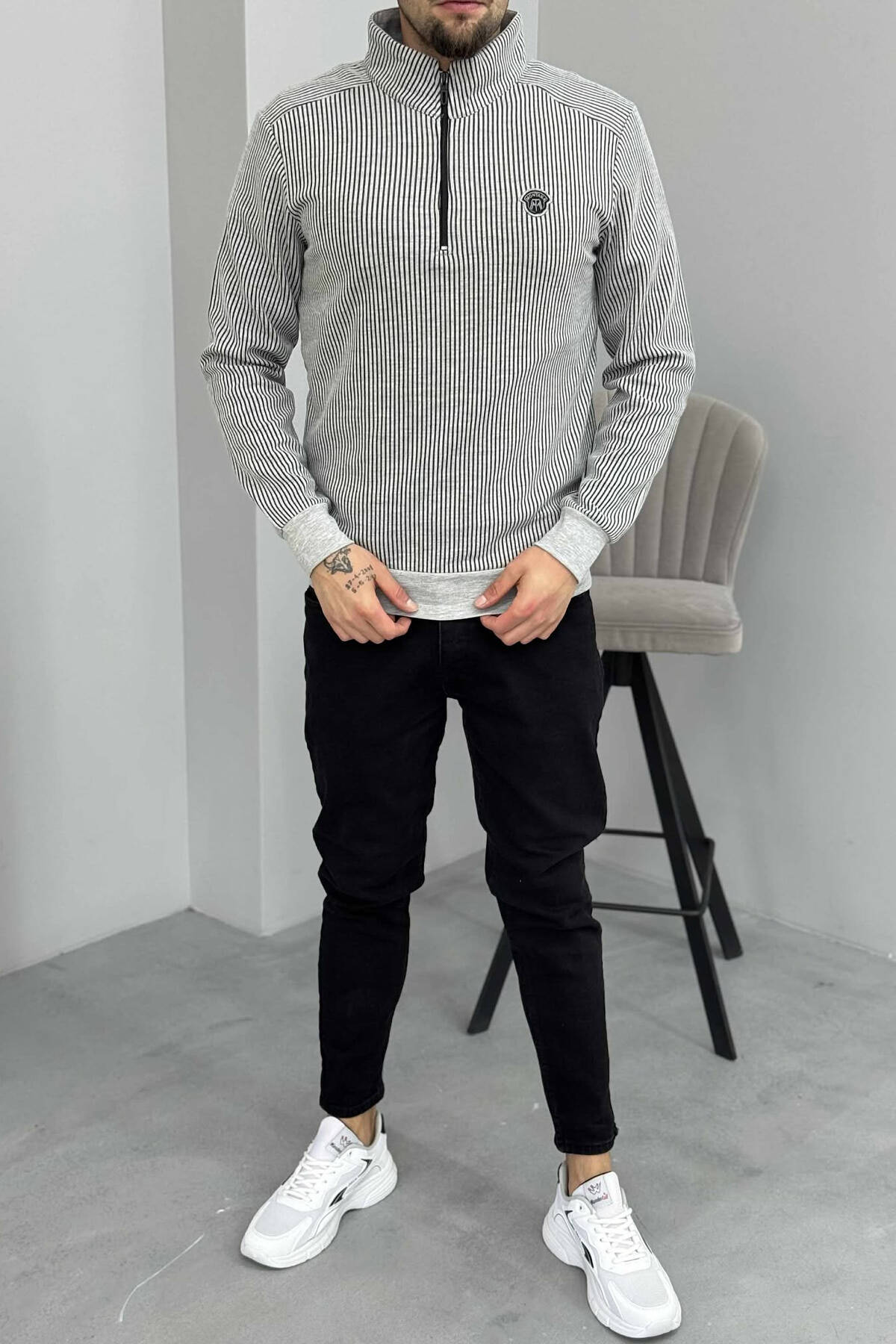 ZIPPER NECK STRIPE DESIGN MEN SWEATSHIRT LIGHT GREY/GZ