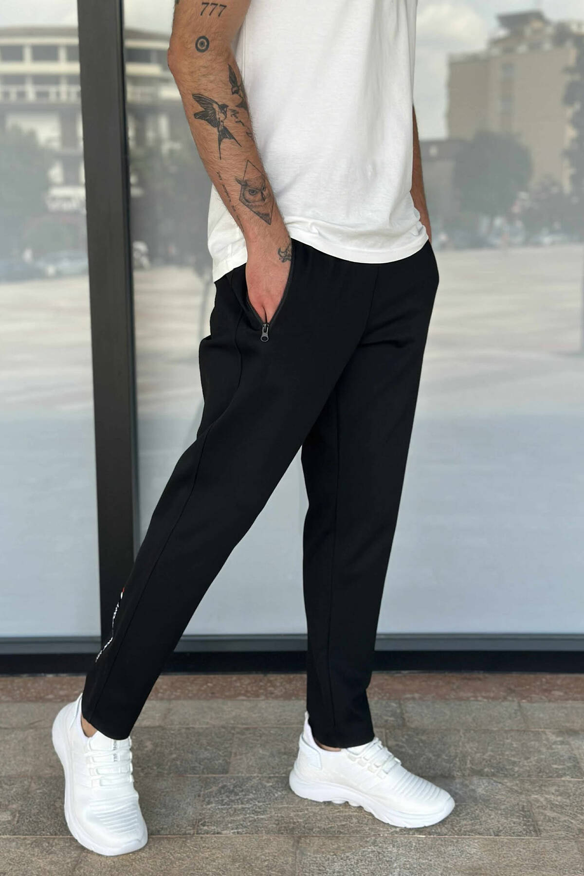 TUTA NJË NGJYRËSHE ME XHEPA ME ZINXHIR PËR MESHKUJ NË NGJYRË TË ZEZË