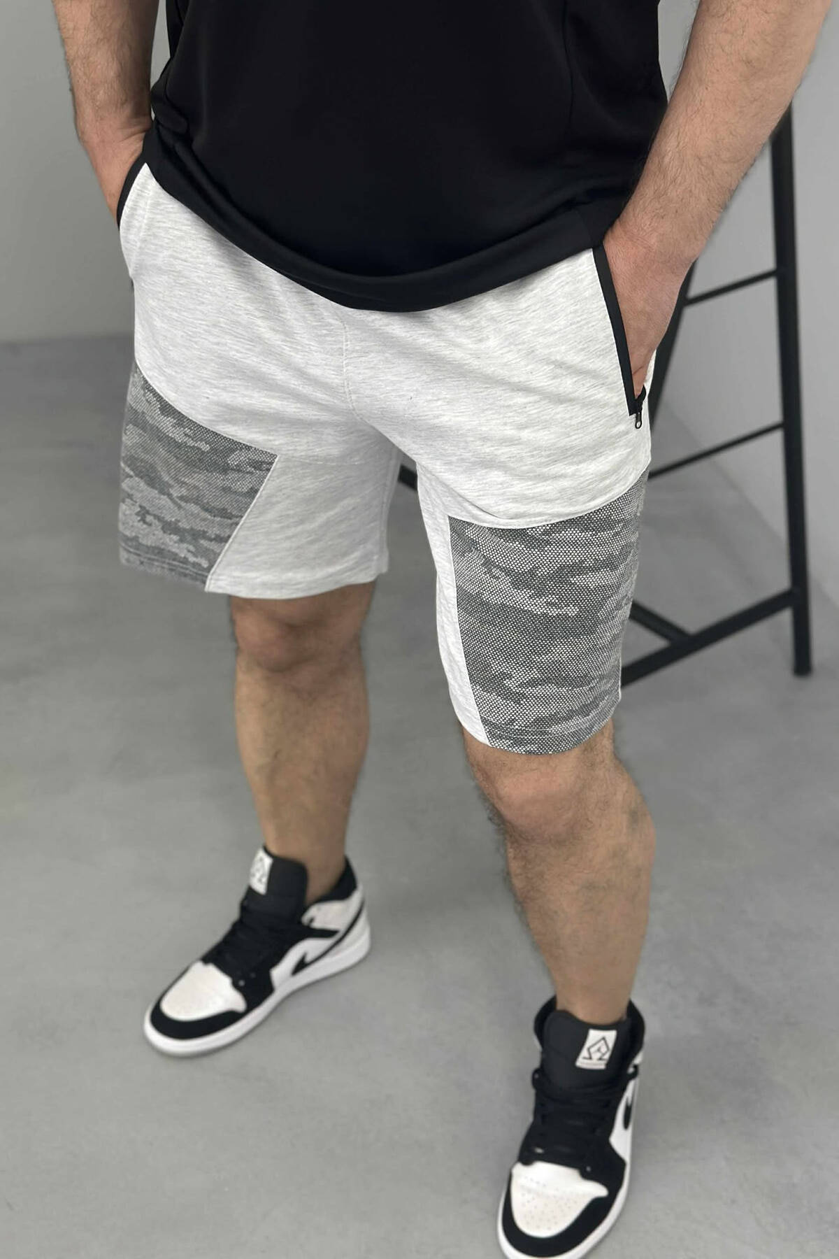 ZIPPER POCKETS SIMPLE MEN SHORT SWEATPANTS GREY ASH/GRI HIRI