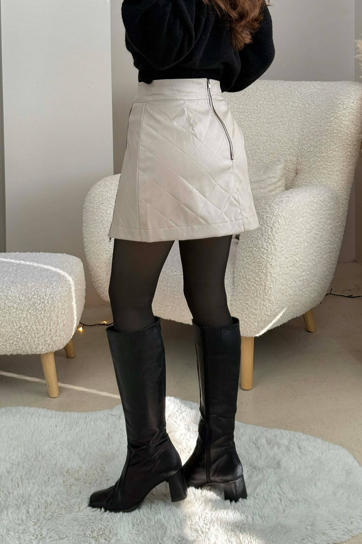 ZIPPERS DETAIL SHORT LEATHER WOMEN SKIRT BEIGE/BEZHE